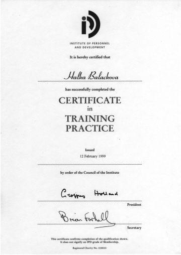 Výcvik v tom, jak učit jiné od CIPD mě v roce 1999 definitivně poslal na lektorskou dráhu. Za kurz vděčím Doc. Dr. Janu Petr, DrCS. Honzo, moc díky za tvé vedení a vhledy do lidí.