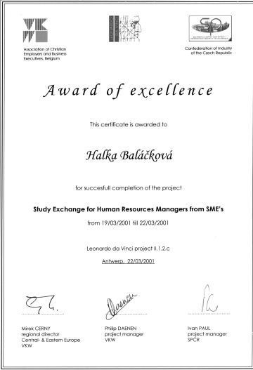 V mé kariéře mě zajímalo leccos: v Antverpách to bylo např. studium lidských zdrojů v malých a středních firmách. Také skvělý kurz.