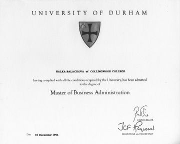 Své MBA jsem udělala v roce 1994 po ročním prezenčním studiu na Durham University Business School, UK. Problém byl tehdy v tom, že skoro nikdo u nás nevěděl, co to vlastně znamená :-))