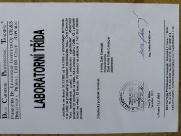 I toto je lahůdečka, z roku 1995: Laboratorní kurz Dale Carnegieho v Praze. Jeho knihy pokládám za stálice na nebi osobního rozvoje.